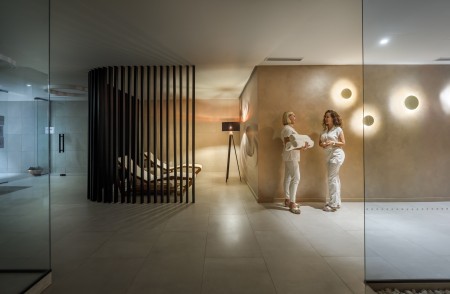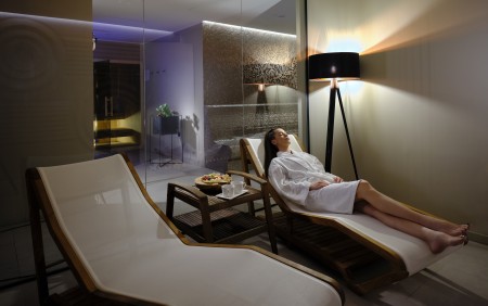 Wellness-Center: ca. 1.300 m² auf zwei Etagen. Spa & Relax-Zone mit Finnischer Sauna, Dampfbad, Textil-Sauna, Bio-Sauna, Massageduschen, Eisbrunnen und beheizten Liegen. Außerdem Fitnessraum, beheiztes Meerwasser-Hallenbad und Whirlpool. Beauty-Salon und verschiedene Behandlungen sowie Massagen. Personen unter 16 Jahre haben keinen Zugang zu den Saunen.