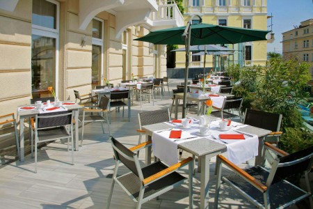 Das Hotel liegt in der Nähe des Zentrums von Opatija. Der nahegelegene historische Stadtkern mit seinen gemütlichen Kaffeehäusern und die lange Promenade entlang der Küste laden zum Flanieren ein. In unmittelbarer Nähe des Hotels finden Sie ein Thalasso-Wellness-Center. Wenige Gehminuten vom Hotel entfernt, befindet sich der idyllische Angiolina-Park, der mit seiner exotischen Pflanzenpracht zum Spazieren und Verweilen einlädt.