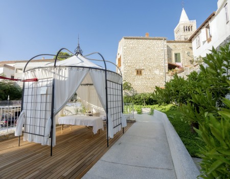 Das kleine Hotel befindet sich an der Uferstraße im Zentrum von Rab und grenzt an den Dorka Stadtpark an. Das charmante Gebäude stammt ursprünglich aus dem Jahr 1924 und wurde vor Kurzem mit viel Liebe zum Detail renoviert.