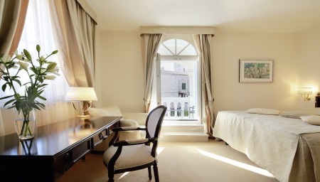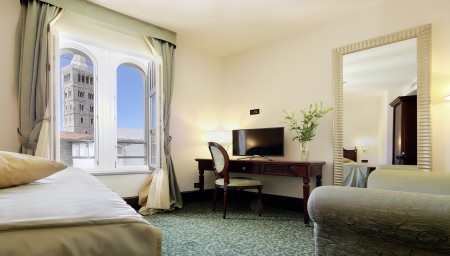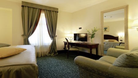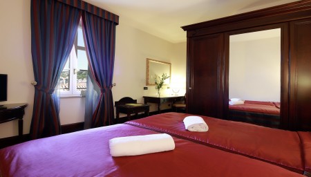 30 Zimmer: Elegant und mit exklusiven Materialien ausgestattet, mit Klimaanlage, Smart LED SAT-TV, Telefon, WiFi-Internet (kostenlos), Minibar, Safe, Bad/WC mit Fön, Bademantel und Slipper. Kinderbett auf Anfrage möglich (gegen Gebühr, € 15 pro Nacht).