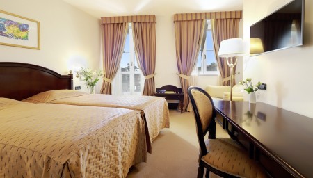 Standard Zimmer: ca. 23-26 m², Kingsize-Bett (180 x 200 cm) oder zwei Einzelbetten (je 90 x 200 cm) mit Blick auf die Altstadt oder den Park.