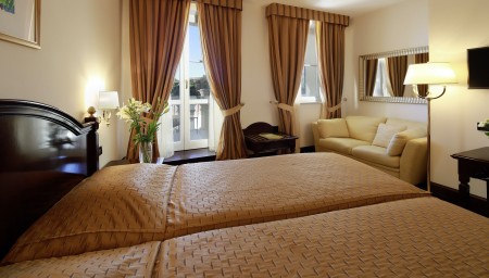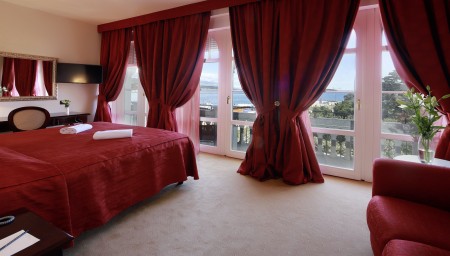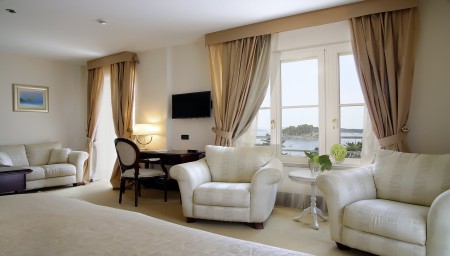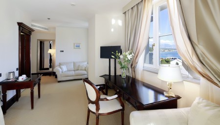 Präsidenten Suite: ca. 60 m², im dritten Stock, Schlafzimmer mit Kingsize-Bett (180 x 200 cm), geräumiges Wohnzimmer mit Büro und Schlafcouch für eine Person (140 x 180 cm), Balkon mit Meerblick.
