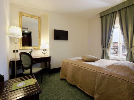 Klassik Einzelzimmer: ca. 18 m², ein Einzelbett (120 x 200 cm), Blick auf die Altstadt.
