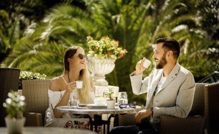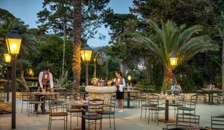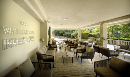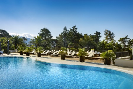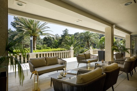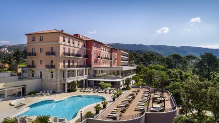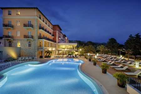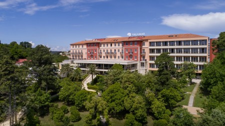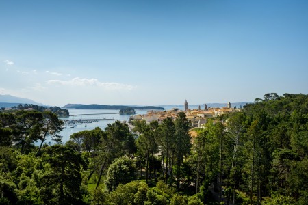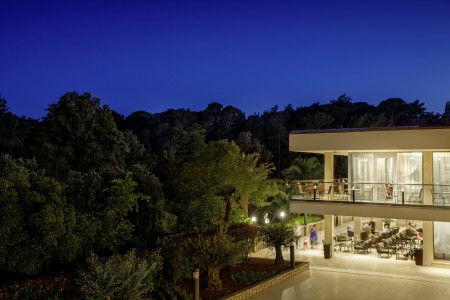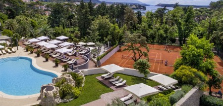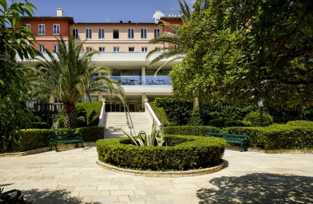 Das traditionsreiche Haus liegt erhöht über dem Hafen inmitten von Palmen und Pinien im Stadtpark „Komrčar“.