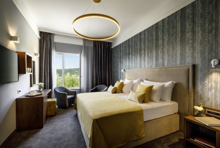 Einrichtungen: Premium Hotel-Restaurant „Nobilis“, à la carte Restaurant „Veritas“ & Wein Bar mit Terrasse, Gin Bar, Kongresshalle, Safe an der Rezeption, Kiosk. Süßwasser-Hallenbad, Süßwasser-Swimmingpool mit Geysiren, Wasserfällen, Sonnenterrasse sowie Pool- & Lounge Bar, Liegestühle und Sonnenschirme kostenlos verfügbar (begrenzte Anzahl). Unterhaltungsprogramm mit Musik, Themenabendessen und Sommerkino (Juni bis Oktober). Internet-Corner und WiFi-Internet im Bereich der Rezeption verfügbar (kostenlos). Parkplatz vor dem Hotel.
