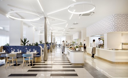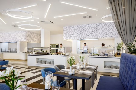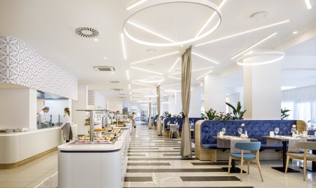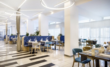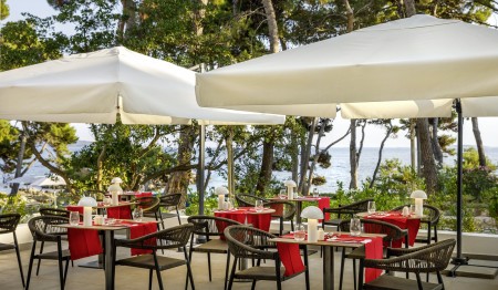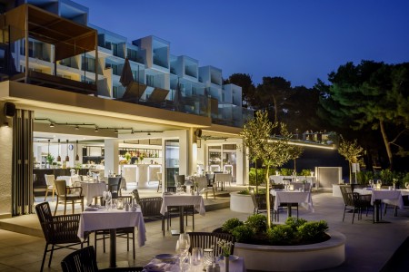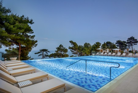 Einrichtungen: Restaurant „Mediterraneo“ mit Terrasse mit Meerblick, Grill „Oliva“, Lobbybar, Lift, Wellnessbereich, Fitnessraum, Meerwasser-Infinity Pool, Meerwasser Relax Pool, Poolbar, Sonnenterrasse mit Liegen und Sonnenschirmen (begrenzte Anzahl, kostenlos). In der Saison Live-Musik auf der Terrasse, Klavierabende und Tanzveranstaltungen. Parkplatz neben dem Hotel (begrenzte Anzahl, kostenlos). WiFi-Internet im gesamten Hotel verfügbar (kostenlos).