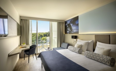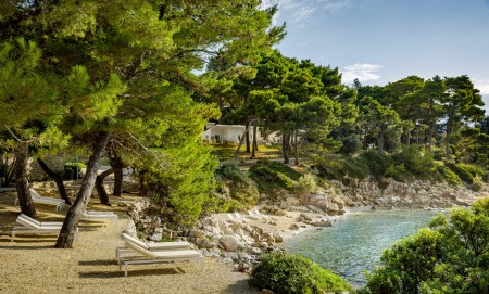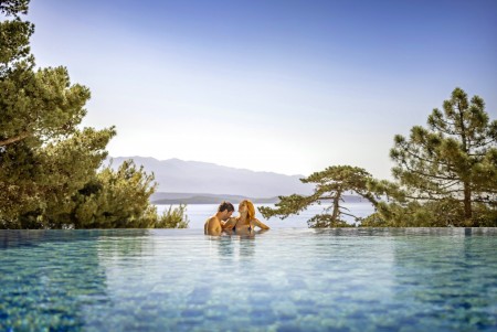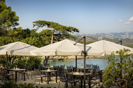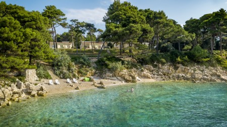 Mitten in der dicht bewaldeten Naturoase der Halbinsel "Kalifront" liegen das Hotel und die dazugehörigen Villen. Die neu gestaltete Poollandschaft lädt zum Entspannen und Verweilen ein. Die Hotelanlage bietet alle Annehmlichkeiten für einen gelungenen, erholsamen Urlaub. Zur Stadt Rab (5 km entfernt) verkehren Taxiboote, außerdem gibt es abends eine Linienbus-Verbindung (jeweils gegen Gebühr).