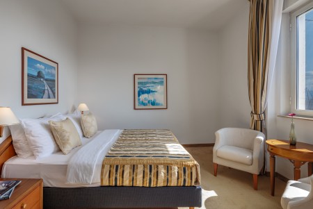 Suite: ca. 40 m², mit Doppelbett, separatem Wohnbereich und Marmorbad.