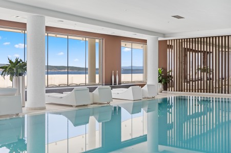 In diesem modernen Luxushotel mit exzellentem Service, das vom bekannten Architekten Ante Vrban entworfen wurde, liegt Ihnen das Meer zu Füßen. Seine offene Bauweise und die Lage direkt am Wasser vermitteln den Eindruck einer nahtlosen Verbindung zum kristallklaren Meer und bieten einen atemberaubenden Blick. Das sorgfältig ausgewählte Interieur und die Designermöbel bieten Ihnen höchsten Komfort. Genießen Sie die ruhige Atmosphäre am hoteleigenen Privatstrand.