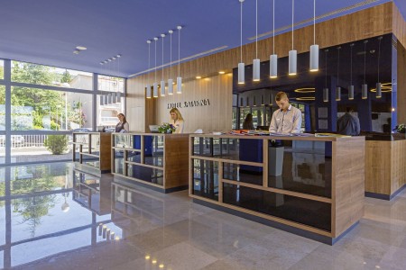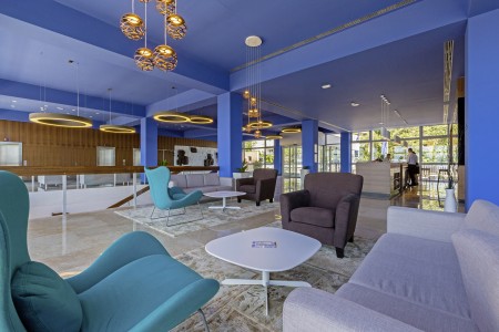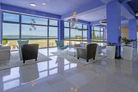Einrichtungen: klimatisiertes Restaurant mit Terrasse, Aperitifbar mit Terrasse, geräumige Lounges, Spielzimmer, zwei Kongressräume, private HNO-Arztpraxis. Beheiztes Hallenbad, Swimmingpool-Komplex am Meer mit zwei Meerwasser-Becken (wetterbedingt vom 15.06.-15.09. geöffnet), Sonnenterrassen, Liegestühlen und Sonnenschirmen (kostenlos, begrenzte Anzahl) und Cafébar. Animationsprogramm für Kinder und Erwachsene (saisonbedingt). WiFi-Internet im gesamten Hotel verfügbar (kostenlos). Kostenpflichtiger Parkplatz am Hotel (begrenzte Anzahl an Plätzen, ca. 10 € pro Tag).