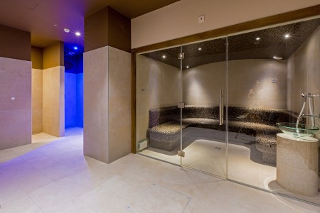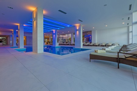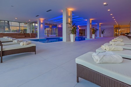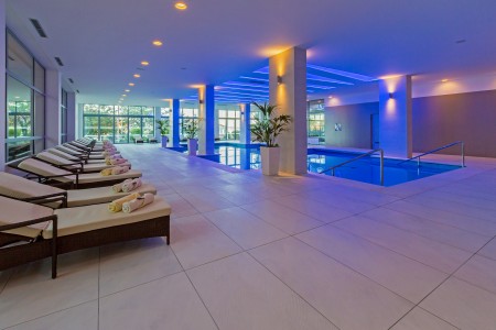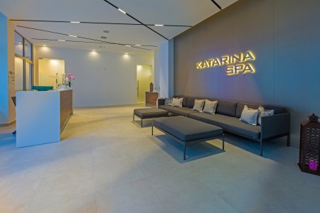 Wellness-Center: „Katarina Spa“: beheizter Pool, Hydromassage-Becken, Finnische Sauna, Bio-Sauna, Türkisches Dampfbad, beheizte Bänke und Liegen zum Entspannen, Relax-Zone mit Ausblick auf den mediterranen Garten.