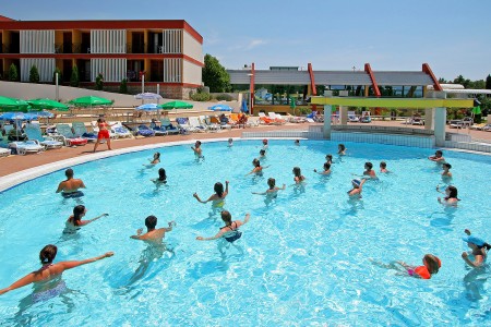 Einrichtungen: Zentralgebäude mit Restaurant, Loungesalon und Rezeption, Safe. Kinderspielplatz, zwei Süßwasser-Swimmingpools, Spraypark für Kinder, zwei Poolbars, Liegen und Sonnenschirme, sowie Badetücher (gegen Kaution) inklusive. Tages- und Abendanimation für Erwachsene, Programm für Kinder im Miniclub (4-12 Jahre) und Teen Club (12-16 Jahre) – 6x pro Woche, Livemusik am Pool (2x pro Woche), Shows für Kinder (1x pro Woche), Kinderspielplatz, Fitness-Studio. Kostenpflichtige Parkplätze (10 € pro Tag) etwa 100 m entfernt. WiFi-Internet verfügbar (kostenlos).