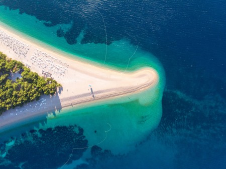 Strand: Rund 150 m zum flach abfallenden Kiesstrand, etwa 700 m zum Strand „Zlatni Rat“. Liegestuhl- und Sonnenschirmverleih.