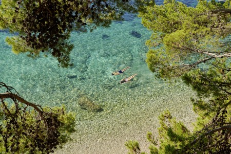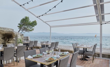 Strand: Rund 30 m zum flach abfallenden Kiesstrand, etwa 500 m zum Strand Zlatni Rat.