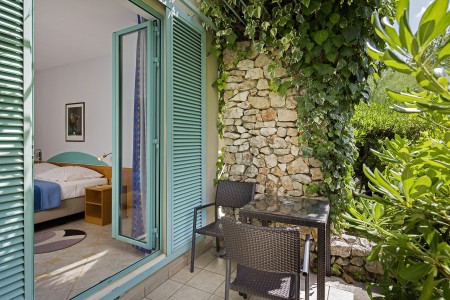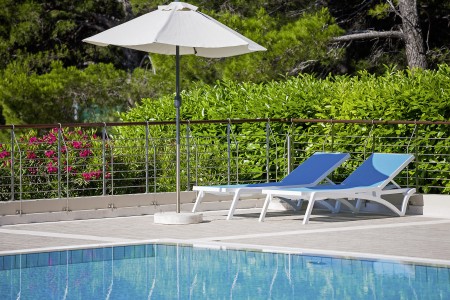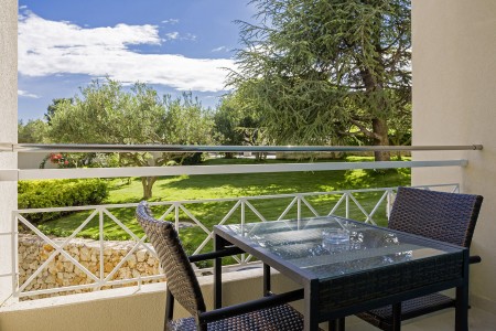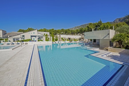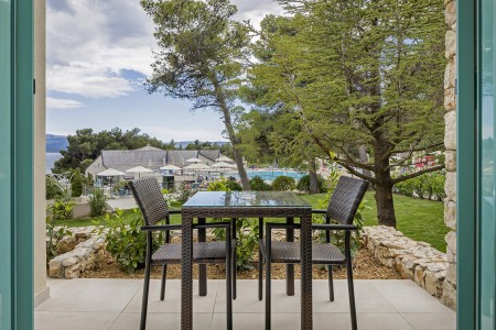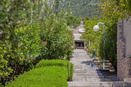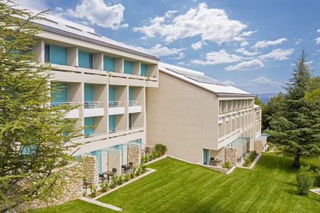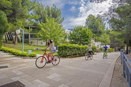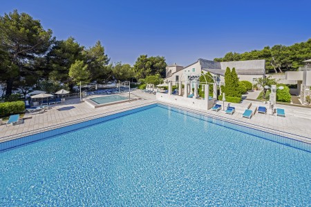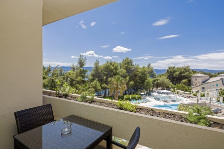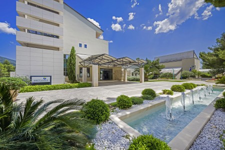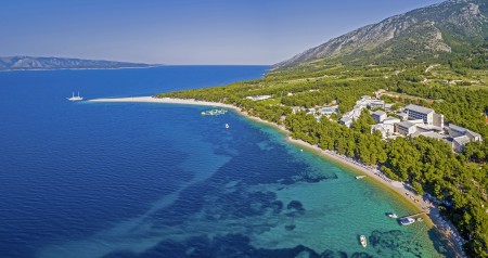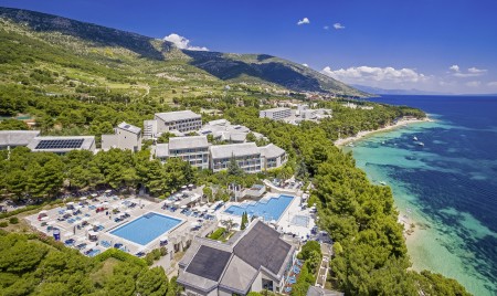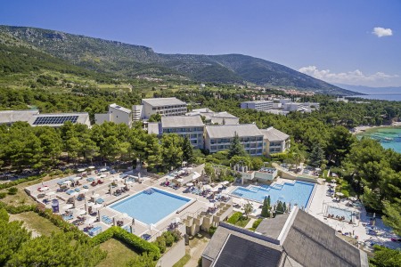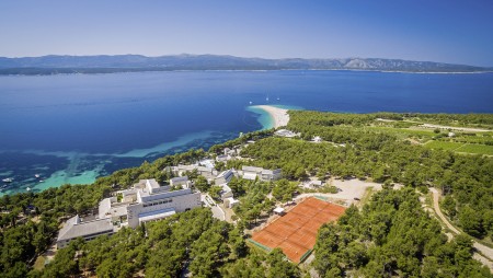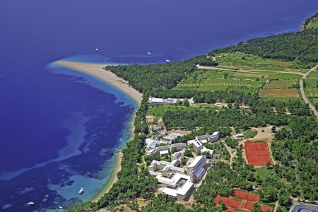 Das moderne und komfortable Sport & Wellness Resort liegt umgeben von üppigem Grün an einem Hang direkt an der Strandpromenade in Richtung des Goldenen Horns (Zlatni Rat), dem wohl schönsten Strand Kroatiens. Die Gebäudeteile und Einrichtungen sind durch Treppen miteinander verbunden.