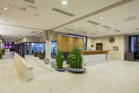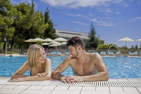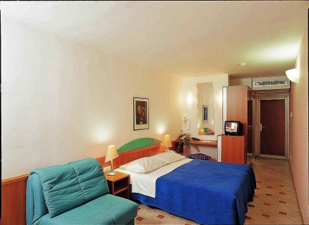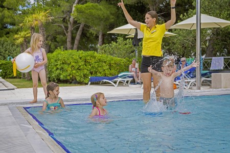 Einrichtungen: Restaurant, Lobbybar, Spezialitäten-Restaurants „Komin“ und „Konoba“ (saisonabhängig wechselnd geöffnet), Pizzeria (von Mai bis September geöffnet), Café, Kiosk, Seminarräume, Dancingclub. Süßwasser-Swimmingpool mit Wasserrutsche und separatem Kinderbecken, beheiztem Ruhe-Pool, Sonnenterrasse, Poolbar, Liegestühlen und Sonnenschirmen (inklusive, begrenzte Anzahl), Badetüchern (inklusive, gegen Kaution). Im Juli und August umfangreiches Animationsprogramm für Kinder und Jugendliche in verschiedenen Altersgruppen mit Poolparties, Sport-Olympiaden u.v.m. Unbewachte Parkplätze auf dem Hotelgelände. Zwei Ladestationen für Elektroautos (kostenpflichtig) vorhanden. Internet-Corner verfügbar an der Rezeption/Lobby (kostenlos), WiFi-Internet im Bereich der Rezeption, Lobbybar und am Swimmingpool verfügbar (kostenlos).