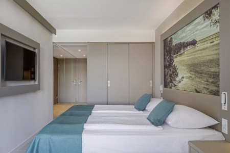 Familienzimmer: ca. 36 m², zwei Doppelzimmer mit zwei Duschen/WC und Verbindungstür. Best-Price Familienzimmer haben keinen Balkon/Terrasse.