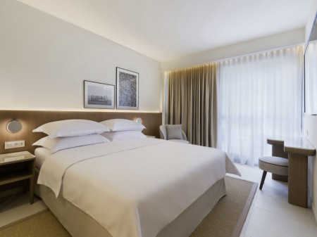 Standard Doppelzimmer: ca. 19-22 m², ein Doppelbett oder zwei Einzelbetten, Balkon. Wahlweise auch buchbar zur Meerseite.