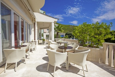 Das Hotel liegt in einer Bucht bei Drvenik, einem kleinen Fischerdorf rund 28 Kilometer südlich von Makarska. Von Drvenik fahren täglich Fähren zur Insel Hvar – ideal für Ausflüge und Entdeckungstouren. Das Haus bietet mit insgesamt 62 Zimmern und 5 Appartements einen komfortablen Aufenthalt in familiärem Ambiente. Im hauseigenen Restaurant genießen Sie kroatische Spezialitäten und internationale Küche.