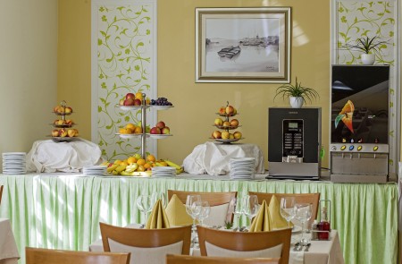Verpflegung: Frühstücksbuffet. Halbpension mit Abendbuffet oder Vollpension mit Menüwahl zum Mittagessen und Abendbuffet gegen Aufpreis buchbar.