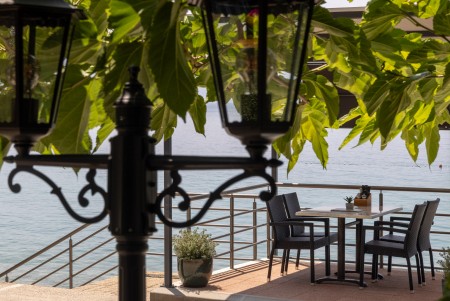 Strand: Der Kiesstrand ist nur 10 m vom Hotel entfernt. Sonnenschirme und Liegestühle stehen kostenlos zur Verfügung.