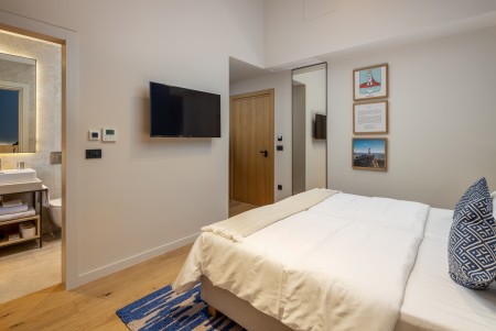 22 Zimmer: modern eingerichtet, verfügen über ein Doppelbett oder zwei Einzelbetten, Klimaanlage, Minibar, Schreibtisch, Safe, SAT-TV, Telefon und Föhn sowie Badezimmer mit begehbarer Dusche und WC. Babybett auf Anfrage