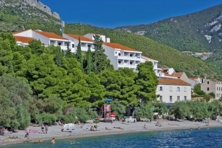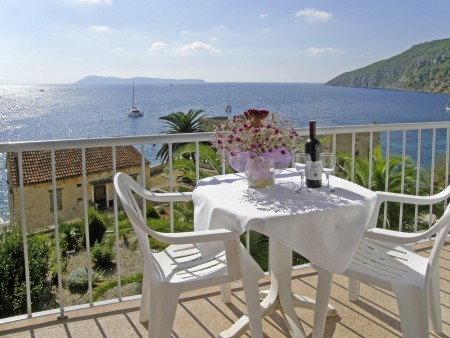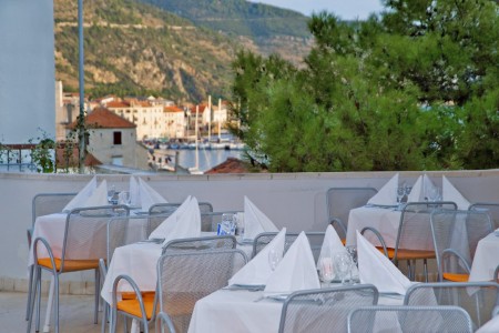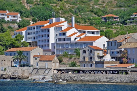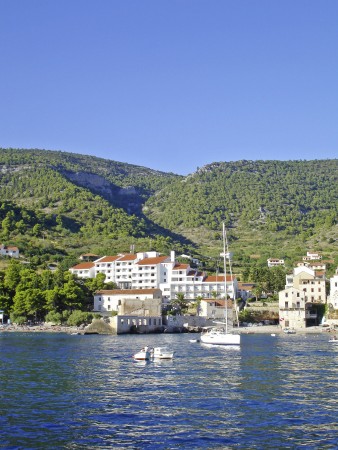 Das Hotel liegt an einem Hang umgeben von Pinien und mediterraner Vegetation, etwa fünf Gehminuten vom malerischen Ortskern entfernt. Von hier bietet sich ein herrlicher Ausblick auf das Inselchen Biševo, das vor allem wegen seiner weithin berühmten „Blauen Grotte“ bekannt ist.