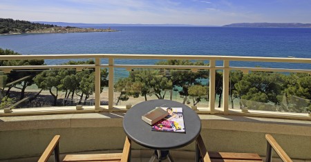 Duplex Suite: ca. 47 m², zwei Badezimmer (eines davon mit Jaccuzzi-Badewanne), Balkon mit Meerblick.