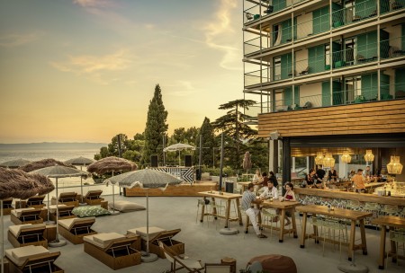 Strand: Kiesstrand [Placesbeach] umgeben von schattenspendenden Kiefern in 20 m über die Uferpromenade erreichbar. Die [Placesbeachbar] bietet besondere Vorteile für Hotelgäste wie z. B. freier Eintritt zu allen Veranstaltungen. Sonnenliegen und Loungebetten gegen Gebühr. Diverse Sportarten und Aktivitäten wie Windsurfen SUP- und Kajak-Verleih am Strand (gegen Gebühr).