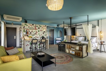 Suite: ca. 46 m², mit Doppelbett, Schlafsofa für eine dritte Person (140 x 180 cm), Loungezone, Badezimmer mit Badewanne und Dusche, Soundsystem für Fernseher mit Bluetooth, kleiner Champagner-Kühlschrank und Minibar mit alkoholfreien Getränken (gegen Gebühr), Bar mit Premium-Getränken (gegen Gebühr), Nespresso-Kaffeemaschine.