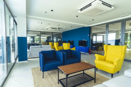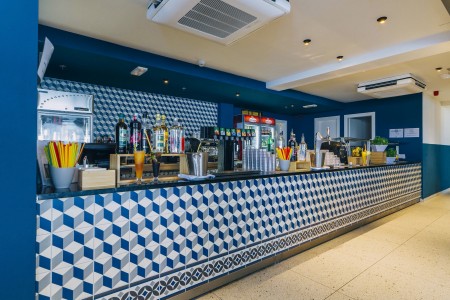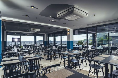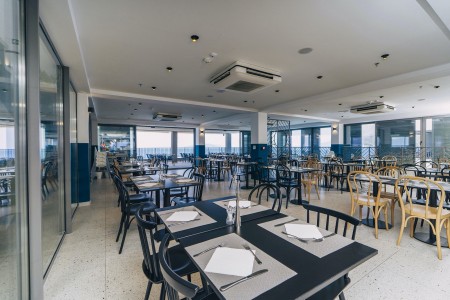 Einrichtungen: Restaurant mit Plätzen im Innen- und überdachtem Außenbereich, Poolbar und Snackbar, Süßwasser-Infinitypool (ca. 78 m²) und Süßwasser-Funpool (ca. 112 m²), Süßwasser-Kinderpool (ca. 21 m², 0,4 m tief), Kinder-Club (4-11 Jahre) mit Kinderanimation (01.06.-30.09.), Teens-Lounge mit Spielekonsolen, Spielplatz, Fitness-Center. WiFi-Internet im Hotel verfügbar (kostenlos). Parkplatz am Hotel (07.06.-05.09. gegen Gebühr, 16 € pro Tag; sonst kostenlos).