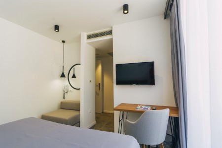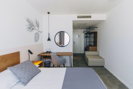 183 Zimmer: modern und komfortabel eingerichtet mit Doppelbett, Klimaanlage, SAT-TV, Telefon, WiFi-Internet (kostenlos), Safe, Minibar und Föhn, Badewanne oder Dusche, WC und Balkon. Babybett auf Anfrage (gegen Gebühr, 7 € pro Tag) möglich.