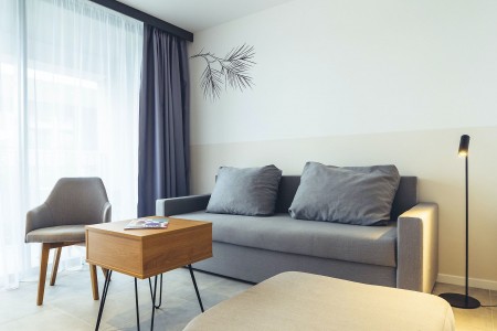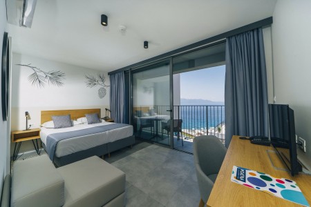 Suite: ca. 40 m², ein Schlafzimmer mit Doppelbett, ein Schlafzimmer mit getrennten Betten, Wohnbereich mit Schlafsofa, mit Balkon oder Balkon mit Meerblick.