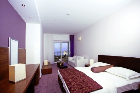 8 Suiten: ca. 41-48 m², bestehen aus einem Doppelzimmer und Wohnraum mit Schlafcouch für zwei Kinder oder eine erwachsene Person, Balkon zur Meerseite.