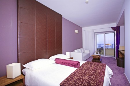 20 Zimmer: ca. 25 m², modern eingerichtet mit SAT-TV, Klimaanlage, Telefon, WiFi-Internet (kostenlos), Minibar, Safe und Dusche/WC, Balkon oder Loggia zur Meerseite. Babybett auf Anfrage kostenlos möglich.