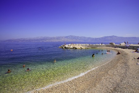 Strand: Zum Kiesstrand sind es etwa 50 m.