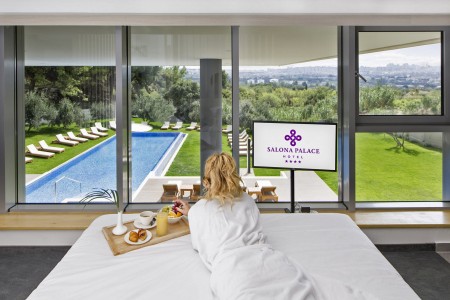 Das kleine, elegante Hotel bietet 47 luxuriös eingerichtete und modern ausgestattete Zimmer mit Balkon, die geradezu den salonitanischen Charme versprühen und gleichzeitig maximalen Komfort der modernen Gegenwart bieten. Der Name Salona stammt von der einstigen Hauptstadt der römischen Provinz Dalmatien. Nur wenige Gehminuten vom Hotel entfernt befinden sich die beeindruckenden Ruinen der antiken Stadt Salona. Die Küstenmetropole Split ist 8 km entfernt.