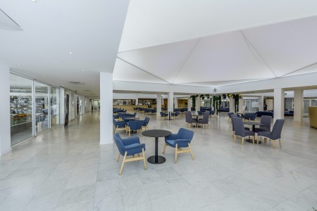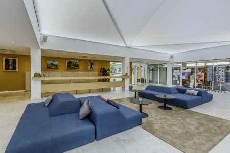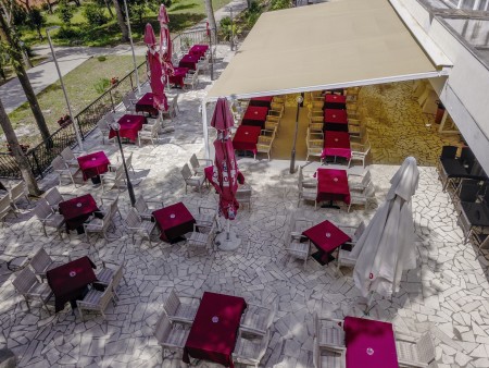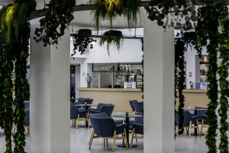 Einrichtungen: 24h-Rezeption, klimatisiertes Buffet-Restaurant, Grillrestaurant und Pizzeria am Strand, Aperitif-Bar im Hauptgebäude sowie Strandbar, Außenpool (200 m²) mit integriertem Kinderpool (40 m²) und Kinderspielplatz. Konferenz-Center mit 3 Sälen für bis zu 350 Personen. WiFi-Internet im gesamten Hotel verfügbar (kostenlos). Parken am Hotel (gegen Gebühr, 5 € pro Tag).