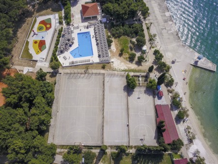 Sport: 6 Sandtennis- und 2 Fußballplätze, Handball- und Basketballplatz, Minigolf, Boccia-Platz.