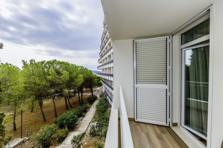 Strand: Zur Badebucht mit Kiesstrand und betonierten Liegeflächen sind es nur wenige Schritte über befestigte Wege und Stufen durch den Wald. Dort befinden sich eine Strandbar, Sonnenschirm- und Liegestuhlverleih (gegen Gebühr) und verschiedene Wassersportangebote (gegen Gebühr).