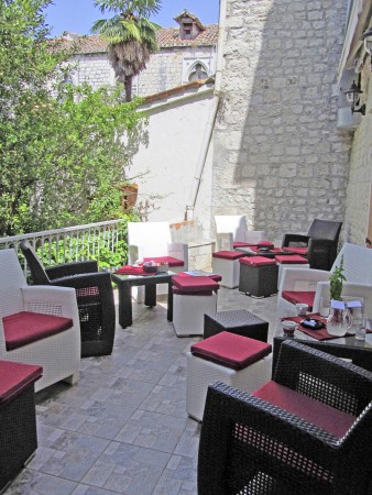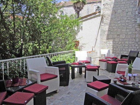 Die Altstadt von Trogir gilt als eine der malerischsten Altstädte Dalmatiens. Aufgrund ihrer unzähligen Kulturdenkmäler steht sie nicht nur auf der UNESCO-Liste des Weltkulturerbes, sondern wird häufig auch „Museumsstadt“ genannt. Mitten im Herzen dieser einmaligen Altstadt befindet sich das Hotel in einem Palazzo aus dem 15. Jahrhundert. Im Erdgeschoss des Gebäudes befindet sich das gleichnamige Restaurant mit über 40-jähriger Tradition. Die über dem Restaurant liegenden Etagen wurden unter Aufsicht der Denkmalschutzbehörde aufwändig renoviert. Das Ergebnis kann sich sehen lassen – modernste Technik gepaart mit jahrhundertealten Elementen und Details, die bewusst erhalten wurden. Das Hotel verfügt über insgesamt 13 Zimmer und 3 Suiten. Unsere Empfehlung für einen Kurzaufenthalt in der einmaligen Atmosphäre dieser dalmatinischen Altstadt oder für ein oder zwei Zwischenübernachtungen vor oder nach einer Kreuzfahrt auf einem unserer Motorsegler, die nur 100 m vom Hotel entfernt anlegen.