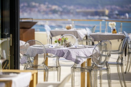 Einrichtungen: Rezeption, à-la-carte Restaurant "Black Pepper" mit Meerblick und Gerichten mit saisonalen und regional produzierten Zutaten, Café "Ola Bar", Rooftop Bar "Code Zero" (saisonal geöffnet ab ca. 01.06.), Rooftop Infinity Pool (ca. 10x6,5 m, beheizbar, geöffnet ca. 01.06.-01.10.) mit Sonnenschirmen und Liegen (nach Verfügbarkeit), Aufzug, Spa- und Wellnessbereich mit Innenpool, Konferenzraum für ca. 80 Personen. WiFi-Internet im Hotel verfügbar (kostenlos). Parken in der Duplex-Hotelgarage und auf dem Parkplatz gegen Gebühr (8 € pro Tag) sowie Ladestation für E-Autos (gegen Gebühr).