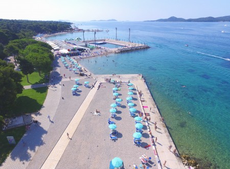 Strand: Zum gepflegten Kiesstrand mit Liegeflächen, Duschen, Liegestuhlverleih und Strandbar sind es etwa 20 m, zum Sandstrand in der Bucht Soline etwa 400 m.
