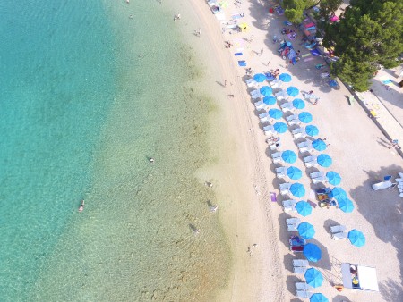 Strand: Zum gepflegten Kiesstrand mit Liegeflächen, Duschen, Liegestuhlverleih und Strandbar sind es etwa 50-80 m, zum Sandstrand in der Bucht Soline etwa 400 m.