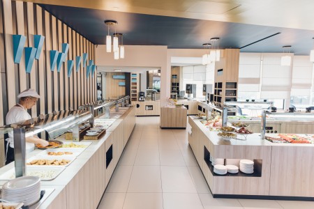 Verpflegung: Frühstücksbuffet. Halbpension mit Abendbuffet oder Vollpension mit Mittags- und Abendbuffet gegen Aufpreis buchbar. Vegetarische oder Diätkost möglich (bitte bei Buchung angeben).