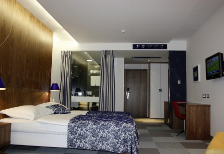 44 Zimmer: modern und komfortabel eingerichtet, ein Doppelbett oder zwei Einzelbetten, Schlafsofa (80 x 180 cm), SAT-TV, Klimaanlage, Telefon, WiFi-Internet (kostenlos), Minibar, Safe und Bad oder Dusche/WC.