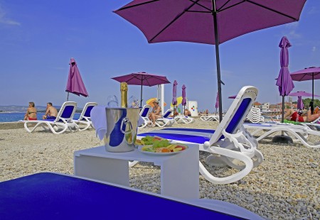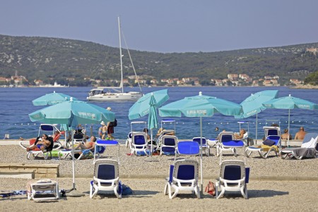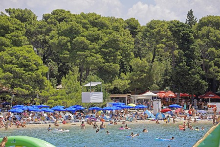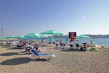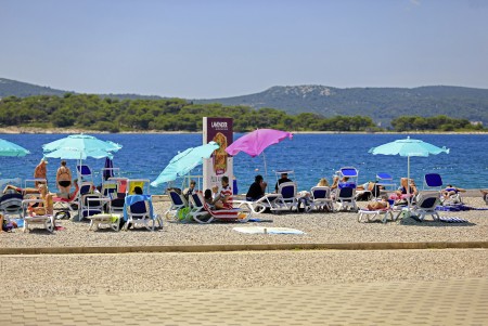 Strand: Zum gepflegten Kiesstrand mit Liegeflächen, Duschen, Liegestuhlverleih und Strandbar sind es etwa 50-80 m, zum Sandstrand in der Bucht Soline etwa 400 m.