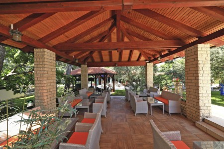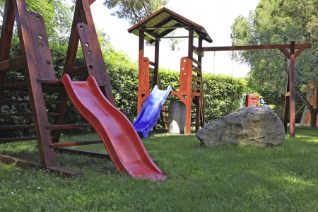 Einrichtungen: Rezeption, Restaurant, Caféterasse, Swimmingpool mit Sonnenterrasse Liegestühlen und Sonnenschirmen (begrenzte Zahl, inklusive) und Poolbar, Kinderspielplatz. Videoüberwachter Parkplatz am Hotel (gegen Gebühr, 10 € pro Tag). WiFi-Internet im gesamten Hotel verfügbar (kostenlos).