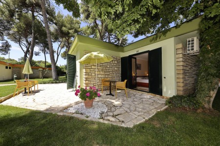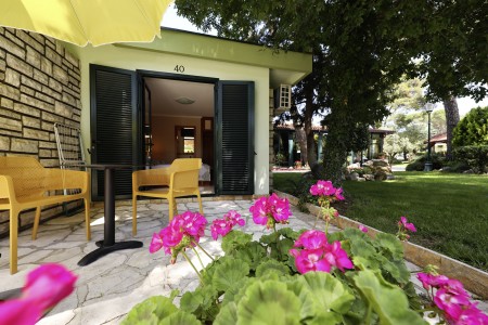 69 Zimmer: in Steinbungalows untergebracht sind sie alle ausgestattet mit Klimaanlage, LCD SAT-TV, WiFi Internet (kostenlos), Badezimmer mit Dusche/WC und verfügen über eine gepflasterte Terrasse mit Sitzmöglichkeit. Babybett auf Anfrage (gegen Gebühr, 5 € pro Tag) möglich.