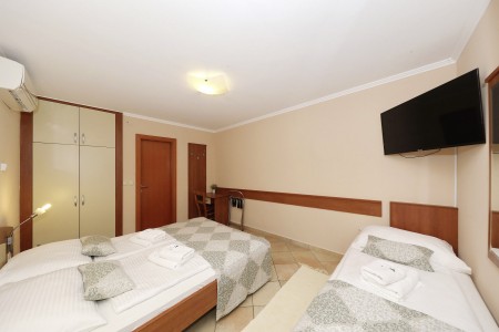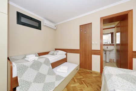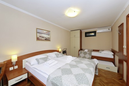 Strand: Zum von Pinien umgebenen Kiesstrand Dražica sind es ca. 150 m über die Promenade. Liegen und Sonnenschirme gegen Gebühr, Tretboot-, Kanu- und Rollerverleih. Cafés und Restaurants in der Nähe.
